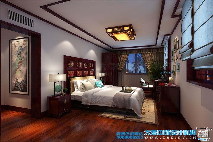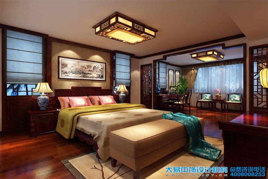 女兒房典雅奢華、一幅唯美的中式畫(huà)裝飾床頭,真乃國色天香之調