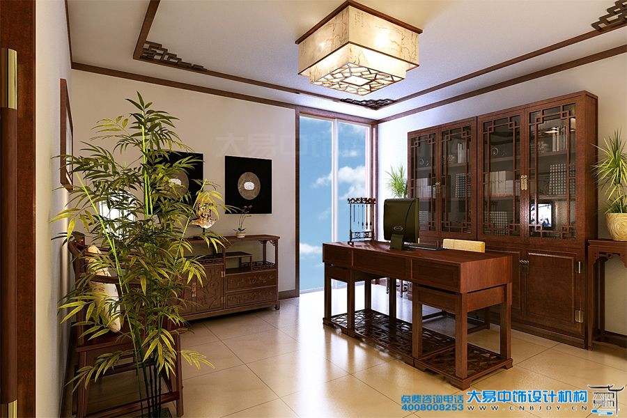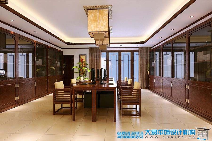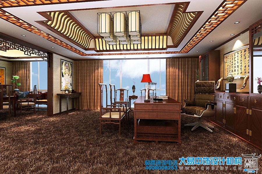經(jīng)理辦公室在中式元素的裝點(diǎn)之下,顯得十分大氣、端莊