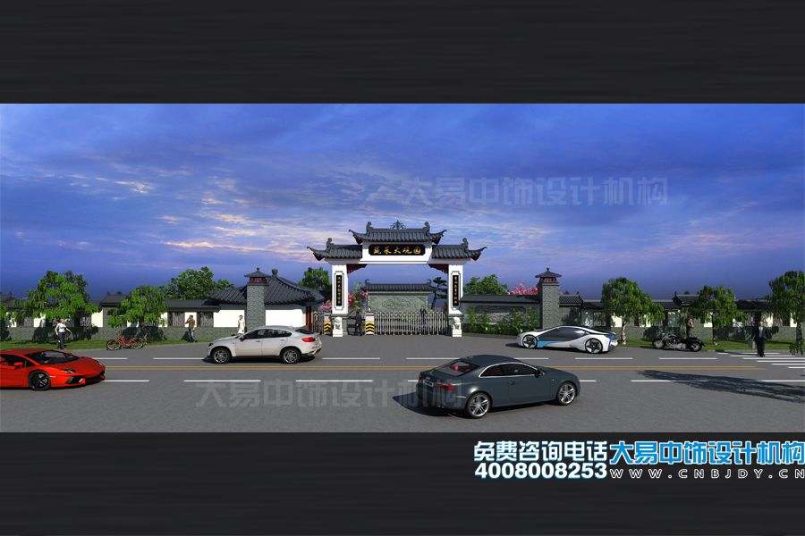 大門(mén)設計,采取了中式傳統建筑模式,突顯大氣、恢弘、莊雅的氛圍。