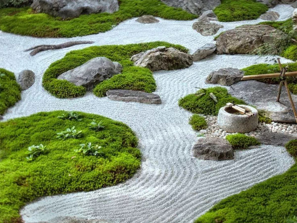 枯山水常被認為是日本僧侶用于冥想的輔助工具,所以幾乎不使用開(kāi)花植物,這些靜止不變的元素被認為具有使人寧靜的效果。