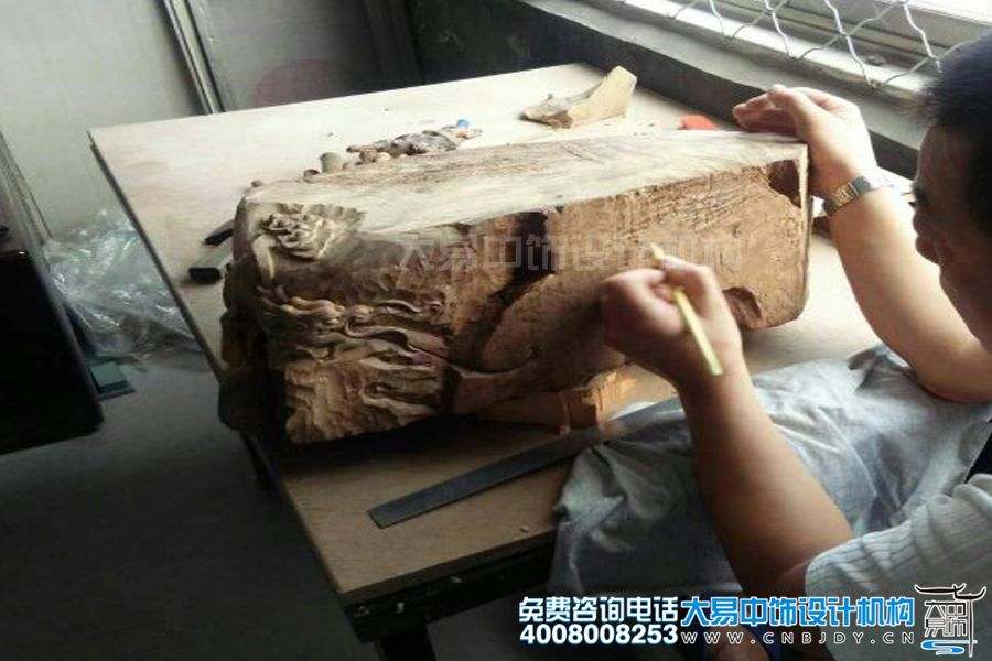 手工雕刻師以精湛的雕刻技藝在元木材上創(chuàng )作出古雅精美的圖案