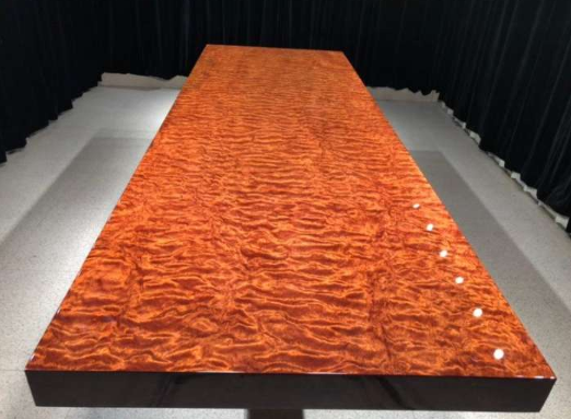 2、看板型。在我國進(jìn)口的巴西花梨的一個(gè)關(guān)鍵特性取決于其徑級大、板寬幅,它是目前為止在我國進(jìn)口的及在我國自產(chǎn)的別的木料所無(wú)法比擬的。市場(chǎng)上甚至可以看到徑級超出3米的木材及板的寬幅超出2米的板材。因而,從板型上分辨巴花寬板也是很容易的。