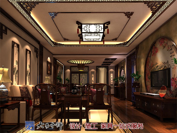 面對面擺放的客廳中式沙發(fā)有利于家人(客人)的交流,非常適合家里客人比較多的家庭。
