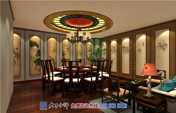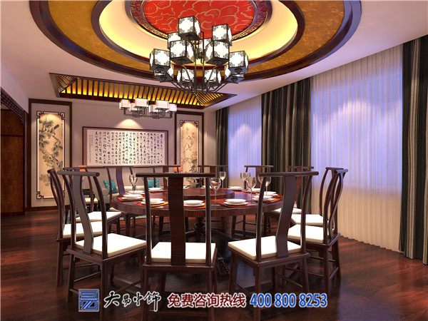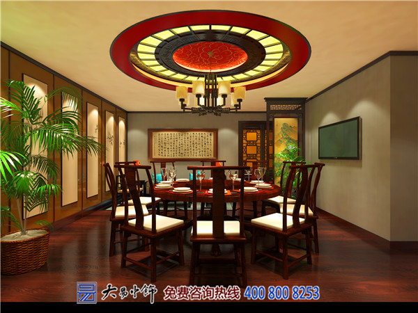 中式餐廳裝修設計首先要有中式元素,凸顯中式風(fēng)格。本案例中,大易中飾針對不同的包房設計不同的裝修特點(diǎn)。