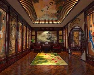 石家莊木版畫(huà)展廳中式裝修效果圖
