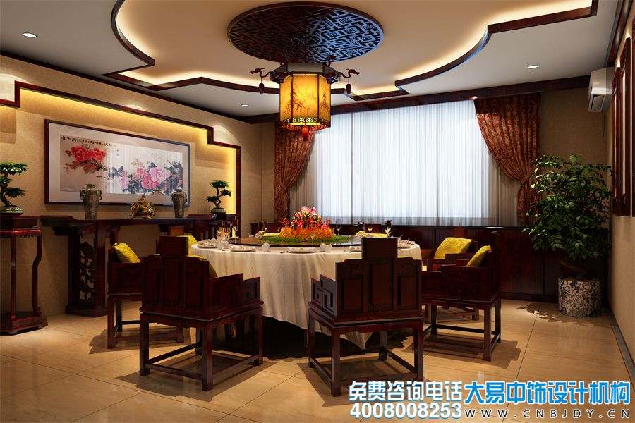 這套來(lái)自位于北京大興農業(yè)科技園的餐飲中式設計案例,不但擁有自身優(yōu)雅而濃郁的古典意蘊,還有現代人們的時(shí)尚流行元素。大易中飾設計師在古典中式的基調匯聚了古樸的中式裝飾元素物以及華美的藝術(shù)品擺設,來(lái)展現傳統文化的精髓,不但讓人心神舒暢,倍感溫馨,還凸顯出整個(gè)餐廳的唯美與動(dòng)感。