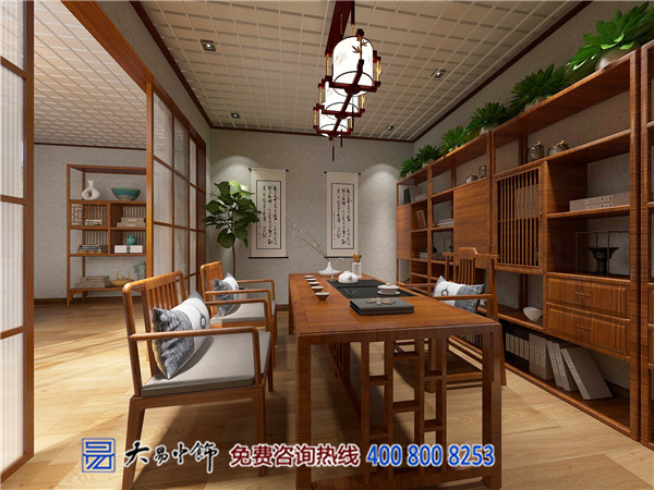 案例賞析:位于河南開(kāi)封的茶樓想要設計一款中式風(fēng)格,要求有中式文化的氛圍又有現代的簡(jiǎn)約,大易中飾設計采用新中式設計風(fēng)格,木質(zhì)裝飾來(lái)營(yíng)造東方文化氛圍。
